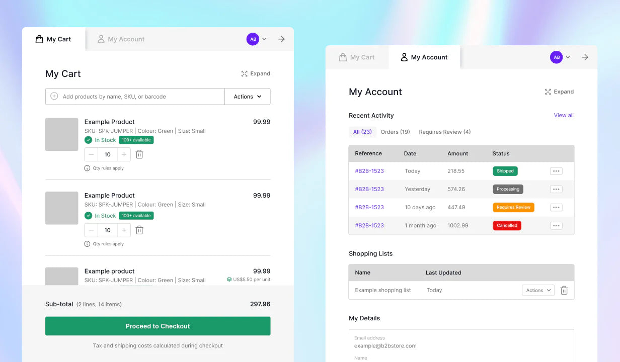 A faster, smarter B2B ordering experience built around how you actually buy. Manage orders, reorder in seconds, access custom pricing, and stay in full control—anytime.