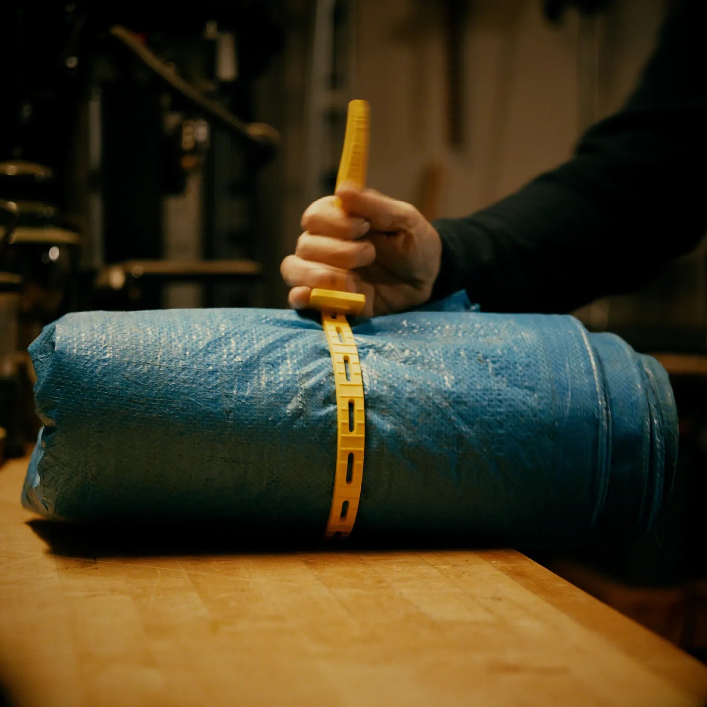 It stops holding. Cord-Tie doesn’t rely on fabric or fibers, so it keeps gripping even when dusty, wet, muddy, or covered in sawdust.